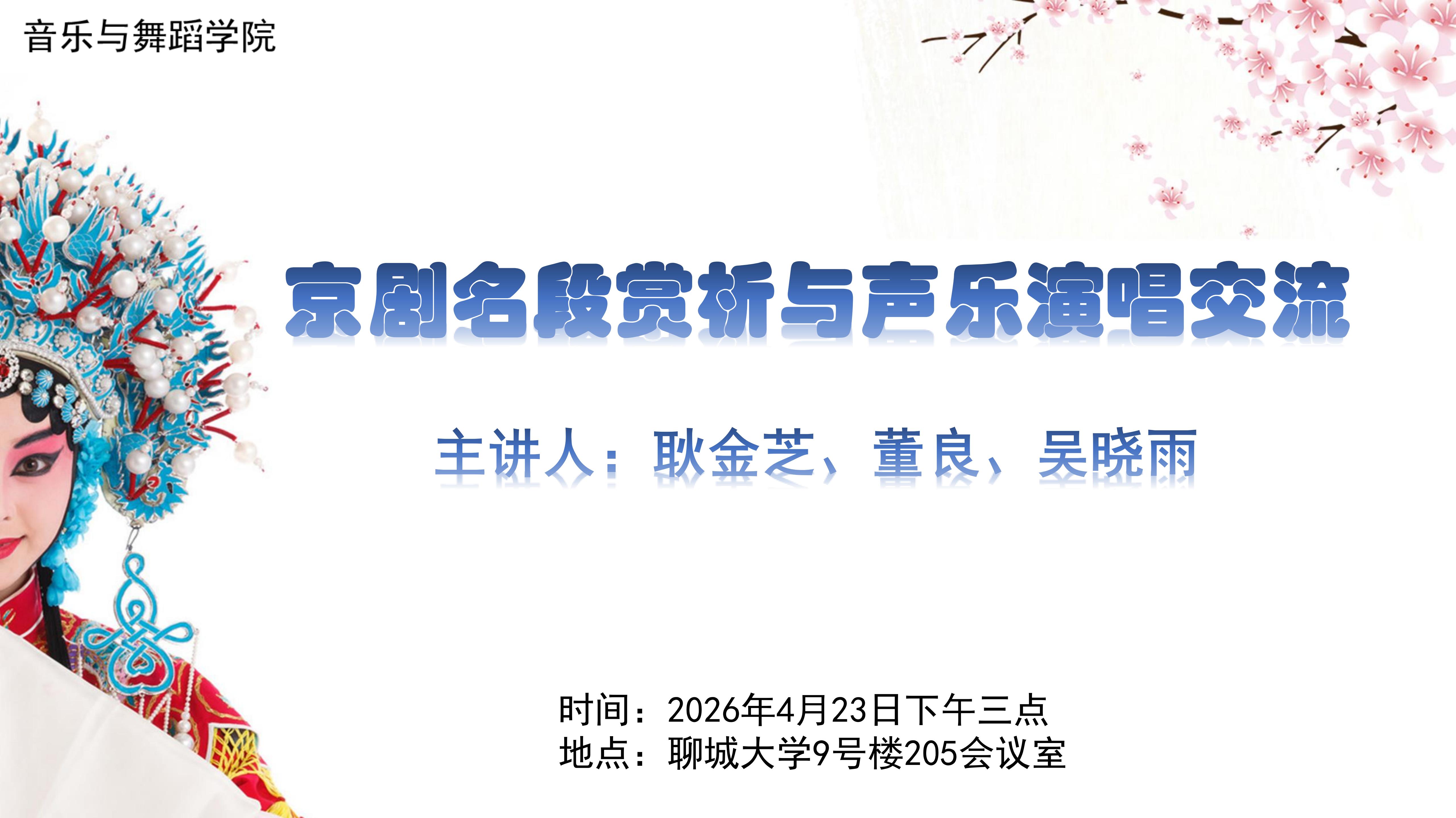【4.23日讲座】京剧名段赏析与声乐演唱交流