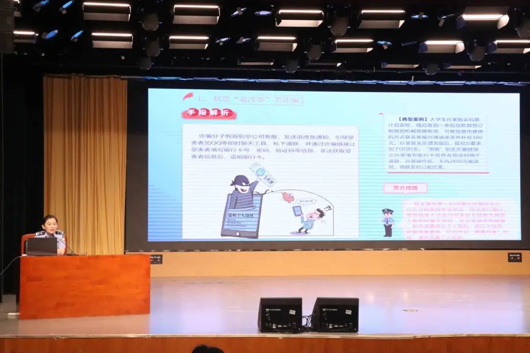 为帮助大学生认清校园诈骗常见类型与套路,提升识别诈骗、防范风险的能力,守护个人财产与信息安全。9月8日,学院特邀聊城大学派出所所长李坤于西校区科学会堂开展“大学生防诈骗宣传教育”。