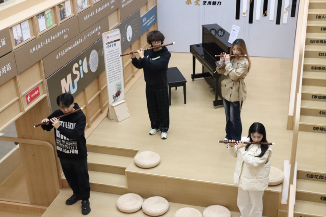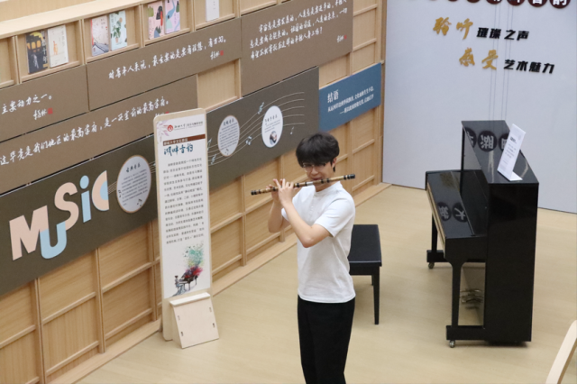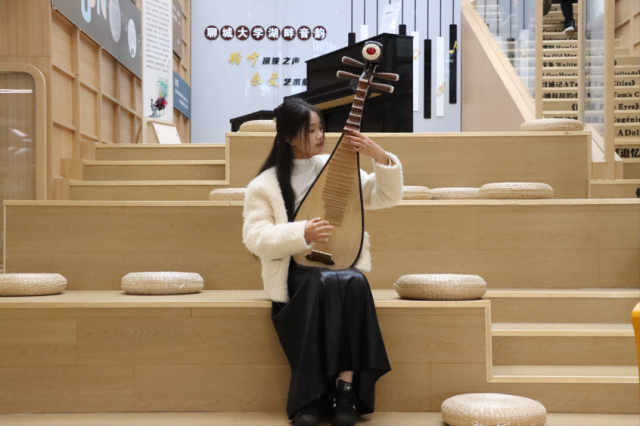湖畔音韵是音乐与舞蹈学院打造的集音乐欣赏、艺术实践、文化传播功能于一体的特色文化驿站。驿站创新采用“静动相宜”的模式,通过钢琴、古筝、二胡、小提琴等中西乐器演奏,既保持书院原有的静谧阅读环境,又通过常态化开展音乐会、主题音乐沙龙、乐器体验日等活动,为师生提供高雅艺术熏陶,构建校园美育实践平台,构建“专业学生实践-普通学生受益”双向美育机制,打造“音乐+”跨学科融合创新空间。11月6日,音乐与舞蹈学院携手湖畔书院开展第二期“湖畔音韵”活动,本次活动的主题为“丝竹里的奋进号角”。