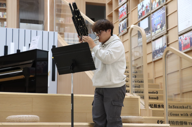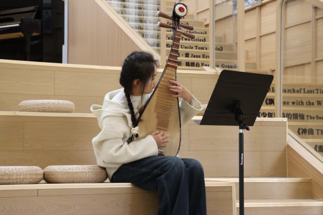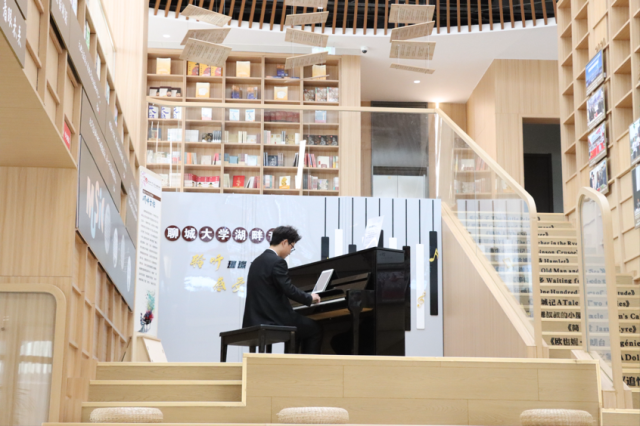 “湖畔音韵”是音乐与舞蹈学院打造的集音乐欣赏、艺术实践、文化传播功能于一体的特色文化驿站。驿站创新采用“静动相宜”的模式,通过钢琴、古筝、二胡、小提琴等中西乐器演奏,既保持书院原有的静谧阅读环境,又通过常态化开展音乐会、主题音乐沙龙、乐器体验日等活动,为师生提供高雅艺术熏陶,构建校园美育实践平台,构建“专业学生实践-普通学生受益”双向美育机制,打造“音乐+”跨学科融合创新空间。