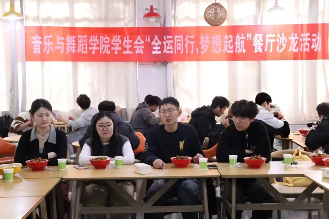 为传承全运拼搏精神、弘扬永不言弃的体育风尚。11月28日,音乐与舞蹈学院于湖苑餐厅一楼举办“全运同行,梦想起航”餐厅沙龙活动,辅导员王森远与各班文体委员齐聚一堂,在轻松融洽的氛围中传递体育力量,让全运精神浸润青春心灵。