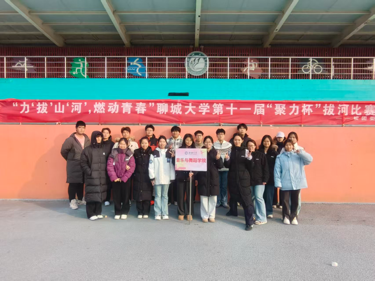 为丰富校园文化生活,锤炼学子团队协作精神,12月11日,聊城大学第十一届“聚力杯”拔河比赛于东校区田径场开赛,音乐与舞蹈学院学子组成参赛队伍踊跃参战。