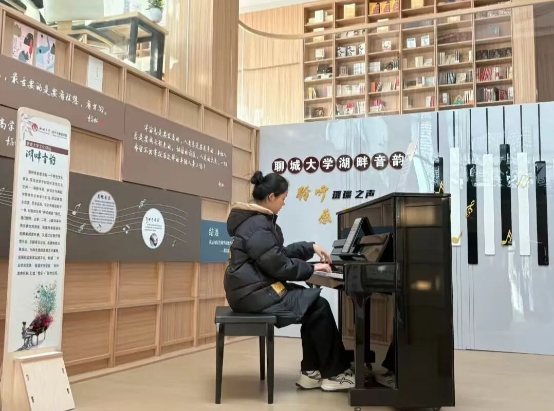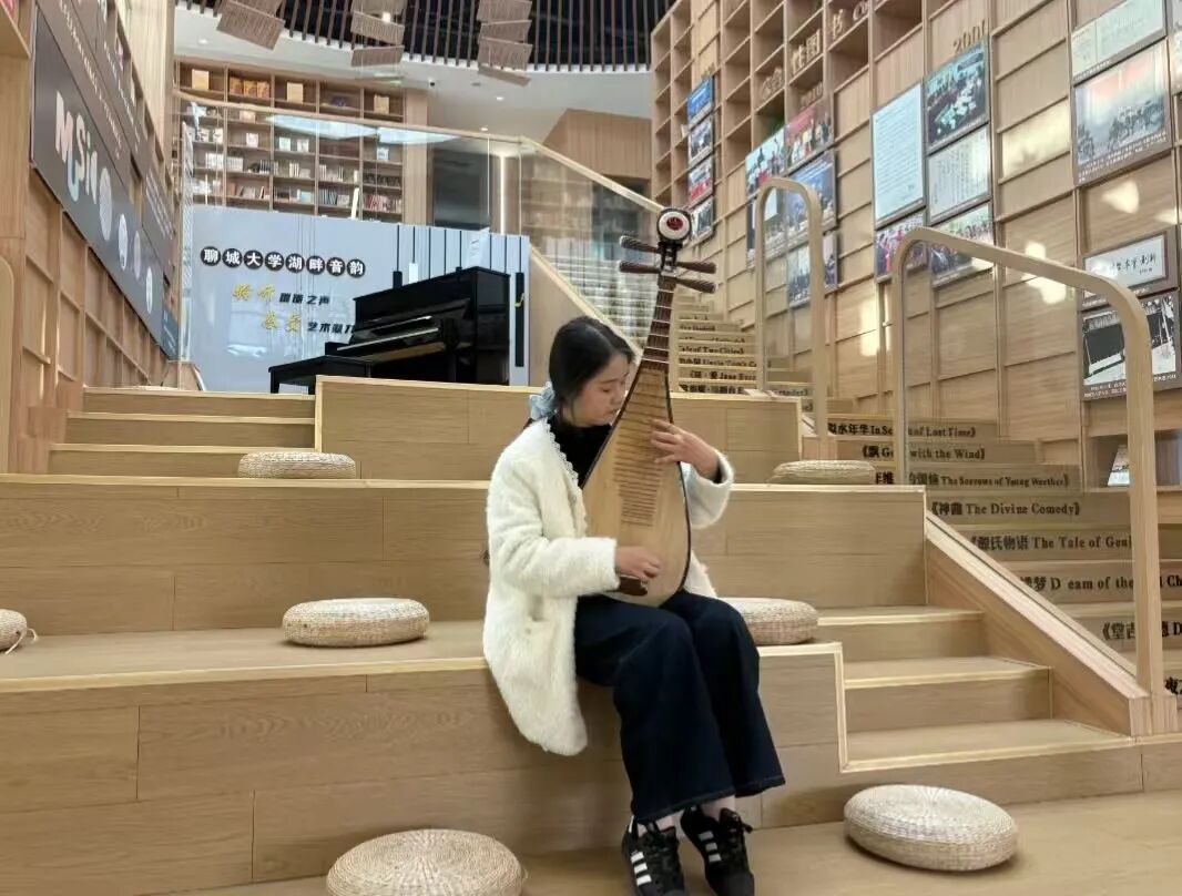 “湖畔音韵”是音乐与舞蹈学院打造的集音乐欣赏、艺术实践、文化传播功能于一体的特色文化驿站。驿站创新采用“静动相宜”的模式,通过钢琴、古筝、二胡、小提琴等中西乐器演奏,既保持书院原有的静谧阅读环境,又通过常态化开展音乐会、主题音乐沙龙、乐器体验日等活动,为师生提供高雅艺术熏陶,构建校园美育实践平台,构建“专业学生实践-普通学生受益”双向美育机制,打造“音乐+”跨学科融合创新空间。