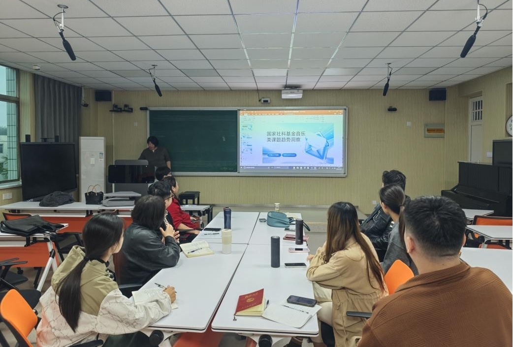 首先,教师代表汇报了在研课题情况,分享了自己的研究思路、立项经验及阶段性成果。教研室老师们围绕研究方法、理论框架等关键问题开展了热烈讨论与交流。随后,声乐教研室主任王明春梳理了近三年国家社科基金音乐类项目的立项数据与总体趋势,分享了当前音乐学领域的研究热点、学科交叉动向及申报策略,为教研室的选题与申报工作提供了参考。
