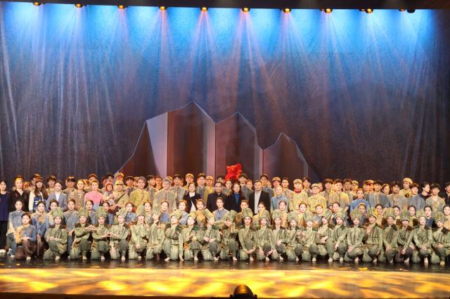 10 月 23 日晚,聊城水城明珠大剧院掌声不断,由聊城大学与临沂大学精心筹备、联合排演的大型舞剧《沂蒙长风》在此圆满公演。作为两校学科建设交流的重要品牌成果,这部作品汇聚了聊城大学音乐与舞蹈学院、临沂大学音乐学院两院舞蹈系160 余位师生的心血,以舞蹈艺术为载体,将沂蒙大地上那段可歌可泣的支前历史与“党群同心、军民情深、水乳交融、生死与共”的沂蒙精神生动呈现。