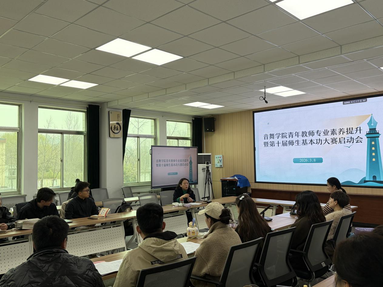 会议伊始,院长尹蕾围绕青年教师成长与发展作动员讲话。尹蕾指出,教师基本功是高校教育教学质量的重要基础,也是教师专业成长的重要体现。山东省师生基本功大赛不仅是展示教师教学能力和专业素养的重要平台,更是推动青年教师在实践中锤炼本领、提升水平的重要契机。学院一直高度重视青年教师队伍建设,希望通过以赛促教、以赛促学的方式,进一步激发教师提升教学能力和专业技能的积极性。领导鼓励青年教师以此次活动为契机,主动提升教学设计能力、课堂表达能力和专业艺术水平,在不断实践中实现自我突破与成长。